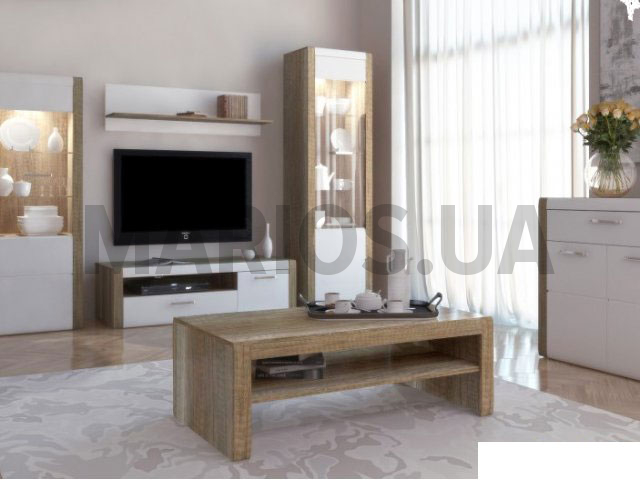 Характеристики мебели Материал ДСП, МДФ Гостиная Rain-2. Состоит из: Витрина Rain E. Размеры: ширина: 57 см; высота: 199 см; глубина: 41 см. Навесная полка Rain D. Размеры: ширина: 119 см; высота: 33 см; глубина: 25 см. Тумба ТВ Rain K. Размеры: ширина: 131,5 см; высота: 34,2 см; глубина: 51,6 см. Витрина Rain C. Размеры: ширина: 92 см; высота: 164 см; глубина: 41 см. Журнальный стол Rain J. Размеры: ширина: 110 см; высота: 39 см; глубина: 60 см. Комод Rain G. ширина: 91,8 см; высота: 87 см; глубина: 41 см. Материал корпуса: ламинированная плита 16 мм. Материал фасада: ламинированная плита МДФ 19 мм. Кромка 0,5 мм. Цвет: дуб каньон/белый глянец.