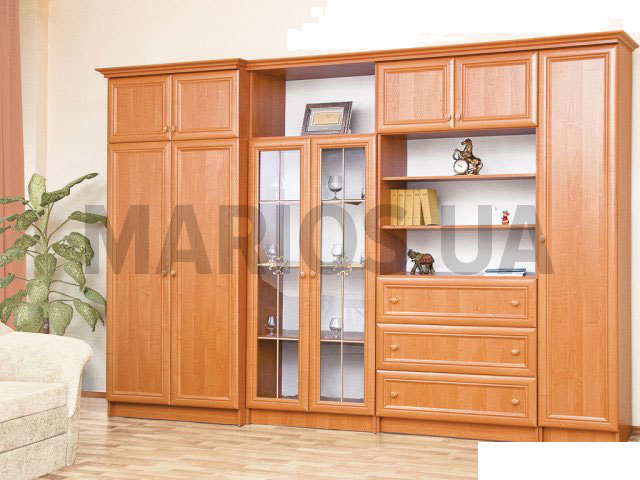 308.00см x 59.00см x 214.00см Характеристики мебели Материал ДСП Гостиная Сити Гостиная может быть изготовлена в таких цветовых вариантах: цвет корпуса - темный венге/ яблоняцвет фасадов - темный венге/ светлый венге, яблоня Гостиная продается комплектом.