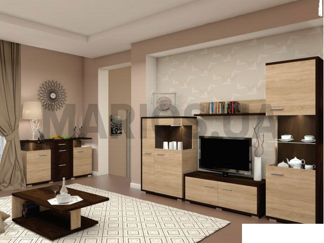 Характеристики мебели МатериалДСП Гостиная Соренто. В себя включает: Комод Соренто.Размеры:длина: 150 см;глубина: 42 см;высота: 88 см.Журнальный стол Соренто.Размеры:длина: 106 см;глубина: 60 см;высота: 35,5 см.Тумба Соренто 90.длина: 90 см;глубина: 42 см;высота: 133,3 см.Пенал Сорено 60.длина: 60 см;глубина: 42 см;высота: 200 см.Тумба ТВ+полка Соренто.длина: 120 см;глубина: 42 см;высота: 44 см.Корпус и фасады гостиной изготовлены из ДСП.Цвет: орех темный/дуб сонома.