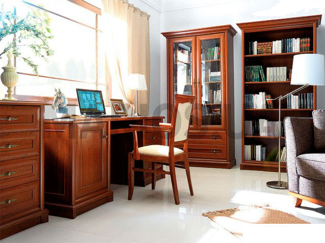 0.00см x 0.00см x 0.00см Вес0.00кг Характеристики мебели МатериалЛДСП, МДФ. Кабинет Соната Характеризуется изысканным дизайном цоколей, карнизов и дверок, стеклами с фрезерованными краями и утонченными патинированными ручками. Цвет: каштан. Материал: Корпус: ЛДСП. Фасад: МДФ. Состоит из: Комод 4s/6 Размеры изделия: (Ш/В/Г) - 61.5/90.5/44.5 см. Стол письменный 158k Размеры изделия: (Ш/В/Г) - 158/77/68 см. Витрина 2d/2s Размеры изделия: (Ш/В/Г) - 110/204.5/43 см. Пенал открытый 100 o Размеры изделия: (Ш/В/Г) - 110/204.5/43 см.