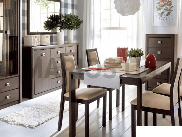Характеристики мебели Материал фасад и корпус - ДСП Столовая Коен Состоит из таких элементов: Витрина LUS/103 Размеры изделия: (В/Ш/Г) - 200,5/58,5/40 см. Зеркало REG 1W2S Размеры изделия: (В/Ш/Г) - 78,5/103,5/2,5 см. Комод KOM 5S Размеры изделия: (В/Ш/Г) - 114/58,5/40 см. Комод KOM 2D4S Размеры изделия: (В/Ш/Г) - 93,5/150/40 см. Стол обеденный STO/130 Размеры изделия: (В/Щ/Д) - 75,5/85,5/130 - 180 см. Изготавливается в цвете венге магия. Стулья в комлект не входят.