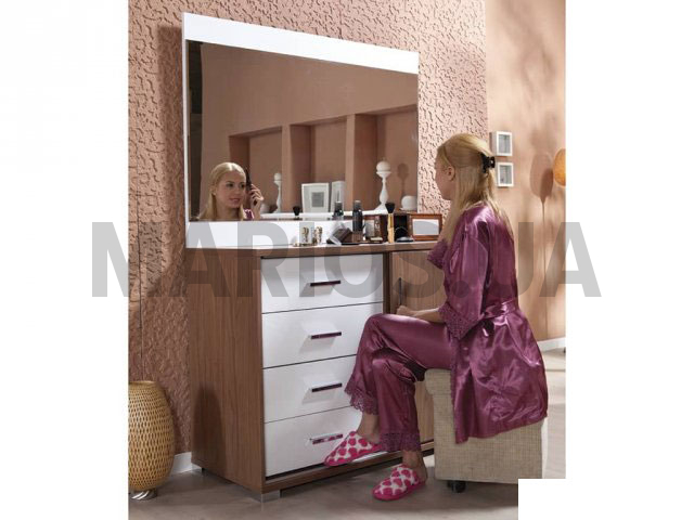 49.00см x 124.00см x 175.00см Вес0.00кг Характеристики мебели МатериалДСП Комод Айлем гармонично дополнит интерьер Вашей спальни в стиле модерн. Конструкция состоит из двух секций. Левая вмещает в себя четыре выдвижных ящика, а правая – отделение за распашной дверцей. Венчает конструкцию хромированная фурнитура. Зеркало идет в комплекте, довершая «образ» комода.Материалы: