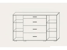 150.00см x 37.00см x 106.00см Характеристики мебели МатериалДСП, МДФ Комод Барбара 150.Наполнение: три выдвижных ящика, шкафчики с полочками.Корпус: ДСП.Фасад: МДФ.
