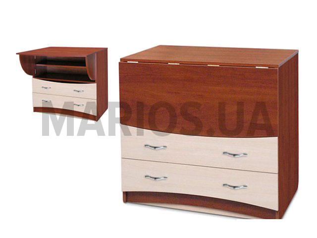 48.00см x 81.00см x 81.00см Характеристики мебели Материал ДСП Комод Байт - элегантная модель-трансформер с дополнительной рабочей поверхностью, которую удобно использовать как пеленальный столик.