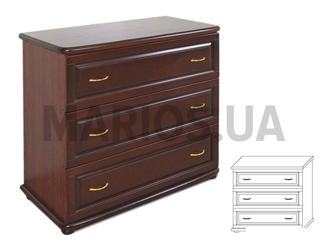 Характеристика комодаКомод К4 изготовлен из экологически чистого массива ольхи. Склейка дерева осуществляется клеем Jovat (Германия). Класс влагостойкости D-4 (клеевое соединение не боится влаги).Компания использует полиуретановую систему окраски и лакировки, которая состоит из комплекса пятислойного нанесения лакокрасочных материалов концерна Herbers (Германия), что позволяет добиться красивой текстуры древесины и вместе с этим порозаполненный эффект древесины с гладкой как пластик поверхностью.Все детали выполнены из стопроцентного массива без использования шпона, ДВП или МДФ.Возможна комплектация комодов с боками из ДСП и деревянными боками.Комод К4 имеет три маленьких выдвижных ящика и тумбочку.Мебель из массива натуральной древесины привнесет в Ваш дом гармонию и тепло, и будет верой и правдой служить не только Вам, но и Вашим детям, и внукам, и правнукам. Размеры комода К4 ОЛЬХА<table border="1" cellpadding="5" cellspacing="1" rules="all" style="width: 450px;"><tbody> Высота, смШирина, смГлубина, см 9412050