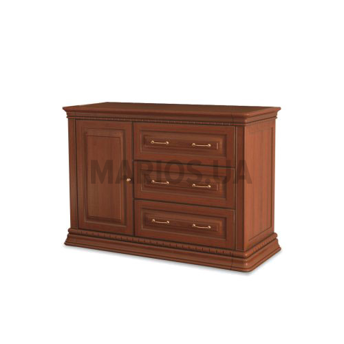 57.00см x 135.80см x 99.00см Вес0.00кг Характеристики мебели Материалольха Комод Омега Люкс - это оригинальная и стильная модель, которая сделает Вашу спальню универсальной, а интерьер абсолютно неповторимым. Комод состоит из трех выдвижных ящиков и одного высокого шкафчика с полками. В комоде разместится масса полезных вещиц, что сделает Вашу жизнь упорядоченной. Материал, из которого сделан комод ОмегаЛюкс - это натуральная древесина <u><em>ольха</em></u>, цвет - коньяк.Размеры комода Омега Люкс Ширина см Высота, см Глубина, см135,8 99 57