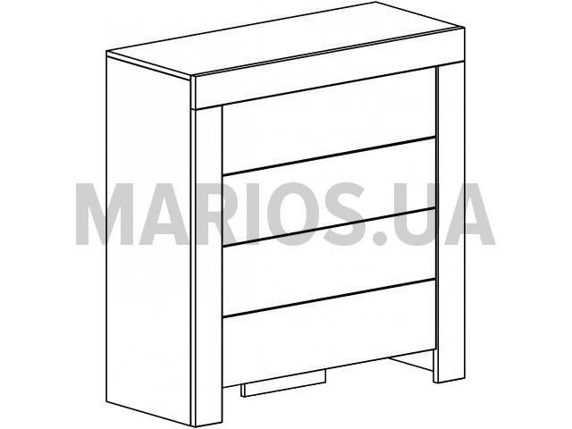 100.00см x 41.70см x 105.00см Характеристики мебели Материал ДСП, МДФ Комод Prime 9. Наполнение: четыре выдвижных ящика. Материал: ламинированная плита ДСП толщиной 16мм, ламинированная плита МДФ 19мм, кромка - ABS 0,45 мм. Использован механизм плавного закрывания дверей. Ручки - деревянные. Цвет: венге магия/анжелик.