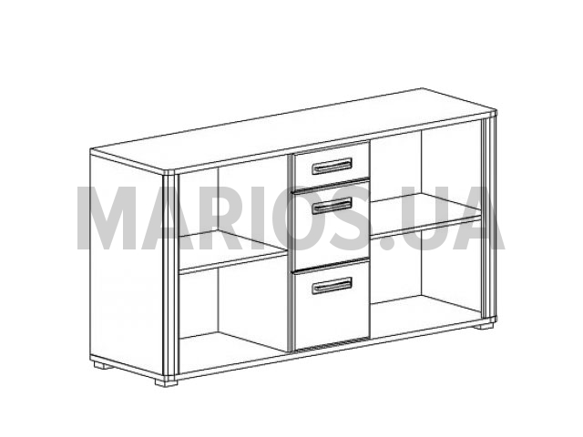 162.00см x 47.00см x 85.50см Характеристики мебели Материал ДСП, МДФ Комод Sales T01. Материал корпуса: ламинированная плита 16 мм и 22 мм. Материал фасада: ламинированная плита МДФ 19 мм, покрыта глянцевой пленкой. На дверях установлен доводчик Airtic. Кромка: ПВХ. Цвет: дуб каньон.
