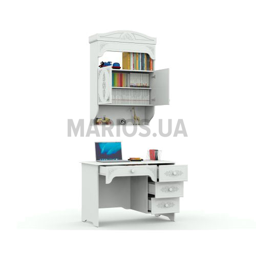 Характеристики мебели Материал ДСП, МДФ Комплект Богема. Все элементы изготовлены: корпус - ДСП, фасад - МДФ. Цвет: белый. В себя включает: Стеллаж Богема: ширина - 83,2 см; высота: 116 см; глубина - 27,6 см. Стол Богема: ширина - 110 см; высота: 75 см; глубина - 60 см.