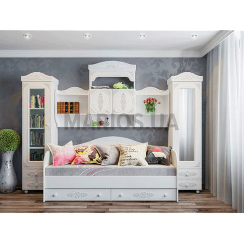 Характеристики мебели Материал ДСП, МДФ Комплект для спальни Ассоль-1. Включает в себя: Кровать АС-10 (спальное место 80х200 см); Пенал с зеркало АС-01; Пенал со секлом АС-01; Полка АС-14; Полка АС-15 (2шт). Размеры кровати АС-10: ширина - 85 см; длина - 204 см; высота - 95 см. Размеры пенала с зеркалом АС-01 ширина - 53 см; глубина - 40 см; высота - 206 см. Размеры пенала со стеклом АС-01: ширина - 53 см; глубина - 40 см; высота - 206 см. Размеры полки АС-14: ширина - 83 см; глубина - 26 см; высота - 116 см. Размеры полки АС-15: ширина - 60 см; глубина - 26 см; высота - 75 см. Ручки – фигурные. Материал фасадов: фирменная текстура 3D. Материал корпуса: ДСП ламинированное 18 мм. Цвет: белый.