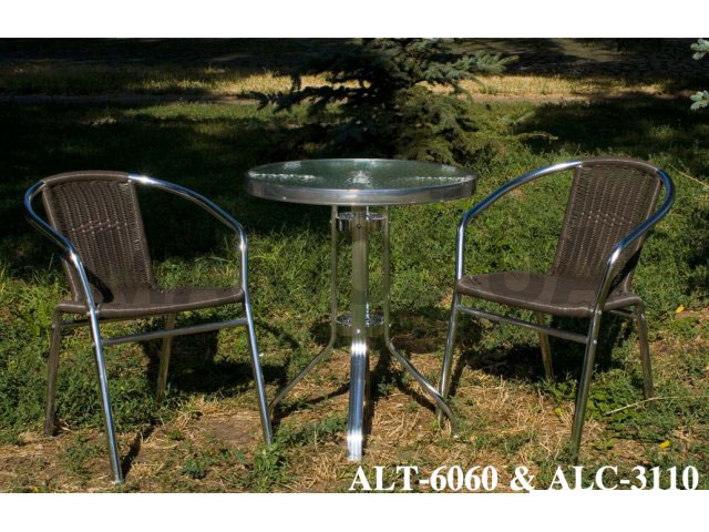 0.00см x 0.00см x 0.00см Вес0.00кг Характеристики мебели Материалалюминиевый сплав, искуственный ротангЦветКофе Комплект мабели для дачи состоит из:металлического стола модель ALT-6060; двух стульев ALC-3110.Стол изготовлен из алюминия, столешница из стекла с отверстием для зонта. Размеры: диаметр- 60 см, высота - 70 м. Стул выполнен из алюминиевого сплава, сиденье - искуственный ротанг. Цвет: кофе. Размеры: глубина - 51 см, ширина - 51 см, высота - 72 см.