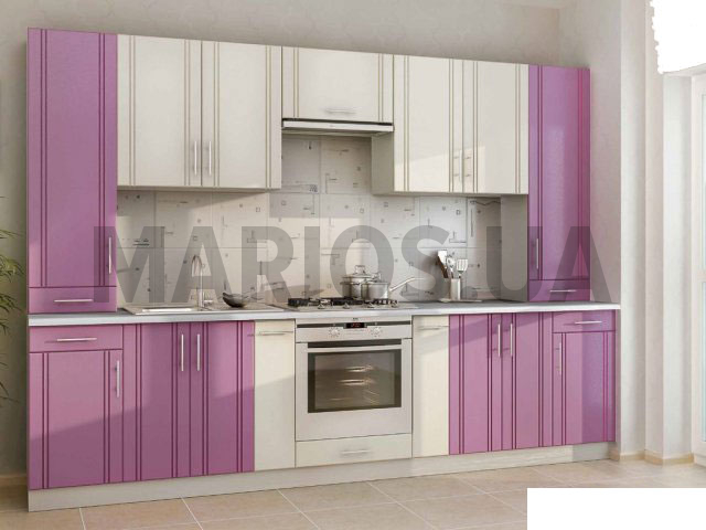 Характеристики кухонного гарнитура Материал корпуса ДСП Материал фасада МДФ Комплект 021. Материал: фасад - МДФ, корпус - ДСП. В себя включает: Шкаф-пенал КП-3 40х132 МДФ (2шт) Размеры: глубина - 32 см; ширина - 40 см; высота - 132 см. Шкаф 2-х дверный К7-12 МДФ (2шт) глубина - 32 см; ширина - 80 см; высота - 72 см. Витрина навесная К7-21 МДФ глубина - 32 см; ширина - 60 см; высота - 72 см. Тумба 1-но дверная КН-11 с одним ящиком МДФ (2шт) глубина - 47 см; ширина - 40 см; высота - 82 см. Тумба 2-х дверная КН-13 МДФ глубина - 47 см; ширина - 60 см; высота - 82 см. Тумба под карго КН-7 МДФ (2шт) глубина - 47 см; ширина - 20 см; высота - 82 см. Тумба с ящиком КН-21 МДФ глубина - 47 см; ширина - 60 см; высота - 82 см. Мойка 2-х дверная КН-14 МДФ глубина - 47 см; ширина - 60 см; высота - 82 см. Общий размер: 300 см. Цвет: фасад МДФ 1 - сиреневый глянец перламутровый, МДФ-2 - слоновая кость, ДСП - алюминий, столешница - петра серая. Цена на кухонный комплект указана только за шкафы, фурнитура и столешница оплачивается дополнительно.
