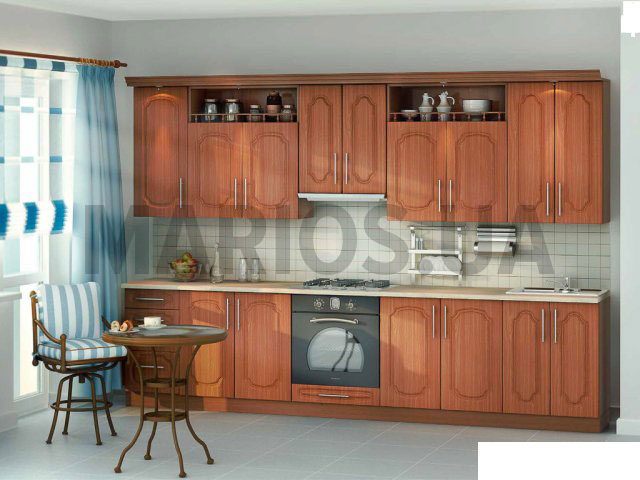 Характеристики кухонного гарнитура Материал корпуса ДСП Материал фасада МДФ Комплект 011. Материал: фасад - МДФ, корпус - ДСП. В себя включает: Шкаф 1-но дверный К9-7 МДФ Размеры: глубина - 32 см; ширина - 40 см; высота - 90 см. Шкаф 2-х дверный с полочкой + балясины К9-15 К9-16 МДФ (2шт) глубина - 32 см; ширина - 80 см; высота - 90 см. Шкаф 2-х дверный К9-12 МДФ глубина - 32 см; ширина - 60 см; высота - 90 см. Шкаф 2-х дверный К7-12 МДФ глубина - 32 см; ширина - 60 см; высота - 72 см. Тумба с ящиками КН-16 (3 ящика+1 ящик) МДФ глубина - 47 см; ширина - 40 см; высота - 82 см. Тумба 2-х дверная КН-13 МДФ (2шт) глубина - 47см; ширина - 80 см; высота - 82 см. Мойка 2-х дверная КН-14 МДФ глубина - 47см; ширина - 60 см; высота - 82 см. Тумба с ящиком КН-21 МДФ глубина - 47 см; ширина - 60 см; высота - 82 см. Общий размер: 320 см. Цвет: фасад МДФ 1 - вишня сакура, ДСП - орех эко, столешница - шитравертин светлый. Цена на кухонный комплект указана только за шкафы, фурнитура и столешница оплачивается дополнительно.