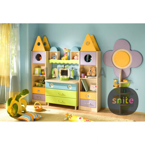 Детский комплект Городок: маленький замок превратит детскую комнату в собственное пространство, в котором Ваш малыш будет чувствовать себя настоящим правителем и королем. Яркие краски и положительная атмосфера, благоприятно воздействует на рост и развития Вашего наследника. Данная мебельная система интересная по дизайну и комфорту, а самое главное экологически чистая и абсолютно безопасная для здоровья Вашего малыша. С таким комплектом мебели, все вещи, игрушки, книжки будут в полном порядке и на своих местах. В состав детского комплекта Городок: маленький замок входят такие предметы: два вместительных стеллажа для вещей и игрушек (ГР-501), которые имеют две полочки и два выдвижных ящика;необычная форма этажерки, в виде цветочка, будет выполнять роль декоративного элемента в детской комнате, а также может служить подставкой для книг и фоторамок (ГР-507);вместительный комод на три выдвижных ящика (ГР-301), ножки которого регулируются;роскошная детская навесная полочка с передвижными секциями (ГР-603). Мебельная система Городок: утро изготовлена из ДСП (Kronoshpan) и МДФ (Kronopol). За дополнительную плату Вы, по своему усмотрению, можете заказать изделие из ДСП Kastamonu или ДСП EGGER. А также Вы можете подобрать любой из оттенков представленной палитры производителя Snite. Цвета МДФ фасада: белый;бежевый;шафрановый;желтый;оранжевый;светло-розовый;сиреневый;голубой;салатовый;бирюзовый;зеленое яблоко;морская волна;малиновый. Цвета ДСП фасада: береза Майнау;кальвадос розовый;выбеленный дуб. Размер стеллажа: Ширина, см Глубина, см Высота, см 50 35 196,3 Размеры этажерки: Ширина, см Глубина, см Высота, см 100 46 229,2 Размеры комода: Ширина, см Глубина, см Высота, см 95 51,5 82,5 Размеры навесной полочки: Ширина, см Глубина, см Высота, см 100 22,5 47,5