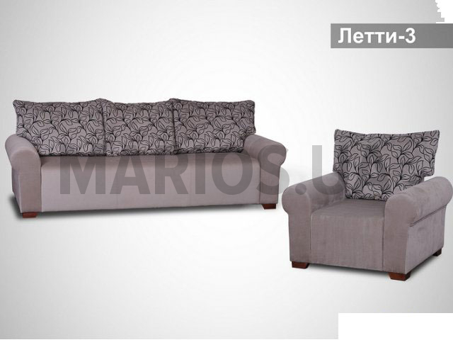0.00см x 0.00см x 0.00см Вес0.00кг Характеристики дивана (кресла, тахты, углового дивана) Механизм трансформацииеврокнижкаОснова сидениянесколько слоев пенополиуретана различной плотности, синтепонРазмер спального места140х193Бельевой ящикесть Комплект мебели Летти-3В комплект входит:Диван 241х73х92 см Кресло 107х73х92 смСпальное место: 140х193 Наполнение: несколько слоев пенополиуретана различной плотности, синтепон Каркас: натуральное дерево хвойных пород, фанера Опоры: деревянные Цена указана без стоимости декоративных подушек, их можно купить отдельно.В обивке комплекта мягкой мебели могут применяться ткани из каталога Обивочные ткани