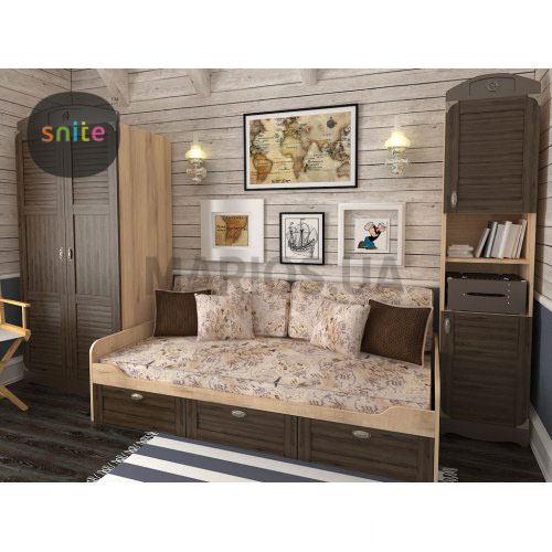 Комплект мебели Океан создан на основе высококачественных материалов с оригинальным дизайнерским решением на морскую тематику. Роскошные фактурные модули этого комплекта создадут неповторимую, романтическую атмосферу и унесут в бескрайний горизонт океана. Система Океан может расположиться даже в самой небольшой комнате, потому что многие элементы обладают компактными размерами и сохраняют драгоценные квадратные метры. В состав комплекта Океан входят такие элементы: шкаф ОС-411 является двустворчатой моделью, с вместительными полками; карниз ОС-802 украшающий шкаф; стеллаж ОС-407 с двумя открытыми полками и двумя шкафчиками с дверцами; карниз ОС-801 украшающий стеллаж; кровать ОС-207, похожая на диван, с тремя вместительными выдвижными ящиками для белья. Размеры шкафа ОС-411: Высота, см Ширина, см Глубина, см 200 90 56,5 Размеры карниза ОС-802: Высота, см Ширина, см Глубина, см 15 9 1,9 Размеры стеллажа ОС-407: Высота, см Ширина, см Глубина, см 200 45 35 Размеры карниза ОС-801: Высота, см Ширина, см Глубина, см 13 45 1,9 Размеры кровати О-207кеан: Высота, см Длина, см Ширина, см 84 196 96,5 Преимущества модульной системы Океан: компактность;уникальность;вместительность;комфорт. Набор выполнен из ДСП (Kronoshpan), который за дополнительную плату Вы можете заменить на ДСП (Kastamonu). И МДФ, цвета натурального дерева, дарящего уют и гармонию. Коллекция Океан представлена в необычных и очень стильных тонах Сосна Антик и Дуб Сонома, поэтому интерьер комнаты будет неповторимым. Цвет фасадов коричневый.