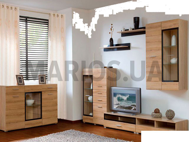 Характеристики мебели Материал ДСП, МДФ. Комплект мебели Вушер - 1 Особенности системы в необычной текстуре, продолговатых ручках и витринах, обрамленных черной рамкой. Гармонично впишется в любой интерьер. Доступные цвета: дуб сонома; дуб сонома/черный глянец. Материалы: Материал корпуса: ДСП. Материал фасада: МДФ. Состоит из: Комод KOM 1W2D2S Размеры изделия: (Ш/В/Г) - 150/93.5/45 см. Тумба РТВ RTV1S Размеры изделия: (Ш/В/Г) - 100/32.5/50 см. Тумба РТВ RTV1SW Размеры изделия: (Ш/В/Г) - 100/32.5/50 см. Витрина навесная SFW1W Размеры изделия: (Ш/В/Г) - 40/125/38 см. Полка P/90 (2 шт) Размеры изделия: (Ш/В/Г) - 90/14.6/24 см. Витрина REG 1W2D2S L/P Размеры изделия: (Ш/В/Г) - 90/127.5/38 см.