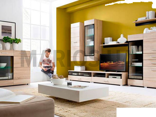 Характеристики мебели Материал ДСП, МДФ. Комплект мебели Вушер Особенности системы в необычной текстуре, продолговатых ручках и витринах, обрамленных черной рамкой. Гармонично впишется в любой интерьер. Доступные цвета: дуб сонома; дуб сонома/черный глянец. Материалы: Материал корпуса: ДСП. Материал фасада: МДФ. Состоит из: Комод KOM 1W2D2S Размеры изделия: (Ш/В/Г) - 150/93.5/45 см. Тумба РТВ RTV1S Размеры изделия: (Ш/В/Г) - 100/32.5/50 см. Тумба РТВ RTV1SW Размеры изделия: (Ш/В/Г) - 100/32.5/50 см. Пенал навесной SFW 1D Размеры изделия: (Ш/В/Г) - 40/125/38 см. Витрина навесная SFW1W Размеры изделия: (Ш/В/Г) - 40/125/38 см. Полка P/90 (2 шт) Размеры изделия: (Ш/В/Г) - 90/14.6/24 см. Витрина REG 1W2D2S L/P Размеры изделия: (Ш/В/Г) - 90/127.5/38 см.