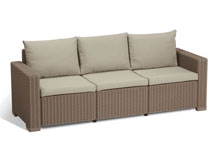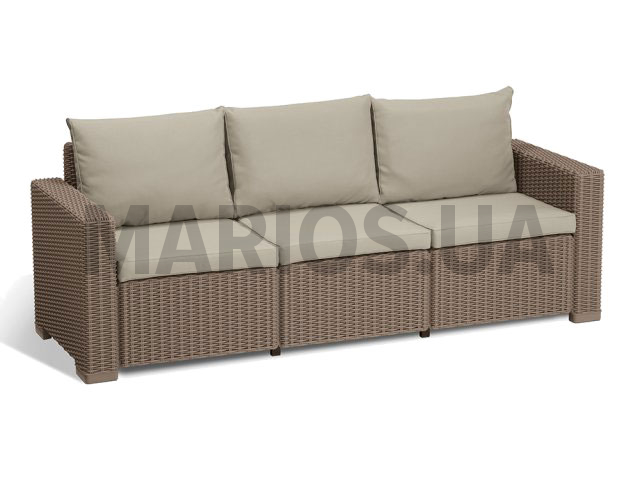 0.00см x 0.00см x 0.00см Вес58.30кг Свойства изделия Материалискусственный ротанг Комплект садовой мебели California 3 seater беж. Цвет: бежевый.Комплектация:диван трехместный - 1 шт.; кресла - 2 шт.; подушки для сиденья и спинок - 10 шт.; стол - 1 шт.Материал: искусственный ротанг (пластик, полипропилен).Размеры:кресло - 83х68х72 см; диван - 199х68х72 см; стол - 68х68х35 см.Максимальная нагрузка:кресло - 110 кг; диван - 110 кг на одно посадочное место; стол - 30 кг.Преимущества:эргономичный дизайн; высокая прочность пластика; устойчивость пенопропилена к высоким температурам и ультрафиолету (цвет не выгорает); не подвержен гниению и воздействию ржавчины.Бренд: Allibert (Голландия).