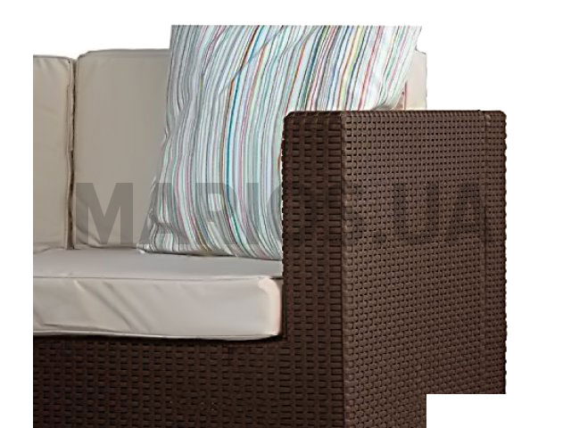 0.00см x 0.00см x 0.00см Вес55.00кг Свойства изделия Материалискусственный ротанг Комплект садовой мебели Provence set коричневый. Цвет: коричневый.Комплектация:диван угловой - 1 шт.; подушки для сиденья и спинок - 11 шт.; стол-тумба - 1 шт.Материал: искусственный ротанг.Размеры:диван - 196х196х70(глубина)х 80(высота) см; стол - 59х59х33 см.Максимальная нагрузка:диван - 110 кг на одно посадочное место; стол - 30 кг.Преимущества:эргономичный дизайн; высокая прочность пластика; устойчивость пенопропилена к высоким температурам и ультрафиолету (цвет не выгорает); не подвержен гниению и воздействию ржавчины.Бренд: Keter (Израиль).