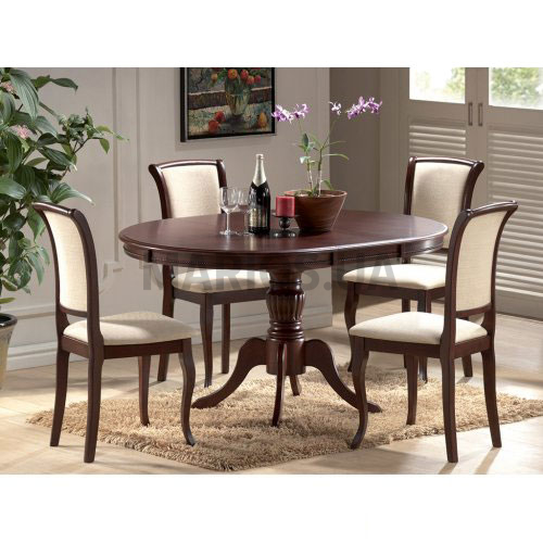Характеристики мебели Материал массив бука, массив гевеи Комплект стол Анжелика 106+4 стула Джил. Комплект состоит из: Стола Анжелика 106. Размеры: 106(+35)х106х76 см. Цвет: каштан. Материал: массив гевеи. Стул Джил ( 4 штуки). Размеры: 43,2х49,3х95,2 см. Цвет: каштан. Материтал: массив бука.