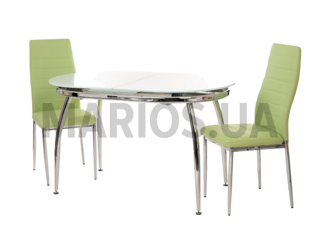 Характеристики мебели Материал кожзам, стекло, сталь Комплект стол T-270 снежно-белый + 2 стула N-66 оливковый Состоит из: Стол T-270 снежно-белый Размеры: Ширина - 121 см. Глубина - 75 см. Высота - 75 см. Максимальная ширина: 151 см. Материал столешницы: стекло. Материал основания: хромированная сталь. Вид: раскладные. Стул N-66 оливковый (2 шт) Размеры: Ширина: 39.5 см. Глубина: 38.5 см. Высота: 46 см. Максимальная высота: 97 см. Материал основания: хромированная сталь. Материал сидения: кожзам.