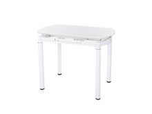 Характеристики мебели Материалкожзам, стекло, сталь Комплект стол T-600 снежно-белый + 2 стула N-40 красныйСостоит из:Стол T-600 снежно-белыйРазмеры:Ширина - 120 см.Глубина - 80 см.Высота - 75 см.Максимальная ширина: 180 см.Материал столешницы: стекло.Материал основания: крашенная сталь.Вид: раскладные.Особенность: белые ноги, без металлических пятаков, скругленный край полки и столешницы.Стул N-40 красный (2 шт)Размеры:Ширина: 42 см.Глубина: 39 см.Высота: 45 см.Максимальная высота: 86.5 см.Материал основания: хромированная сталь.Материал сидения: кожзам.