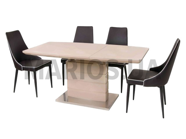 Характеристики мебели Материал стекло, МДФ, сталь, кожзам Комплект стол TM-50-1 + 4 стула M-03-1 коричневый Состоит из: Стол TM-50-1 бежевый Размеры: Ширина - 80 см. Глубина - 140 см. Высота - 76 см. В разложенном виде максимальная ширина: 180 см. Материал: МДФ, стекло. Стул M-03-1 кофе мокко (4 шт) Размеры: Ширина: 49 см. Глубина: 46 см. Высота: 49 см. Максимальная высота: 92 см. Материал сидения: кожзам. Особенность: Кожзам + белый кант.