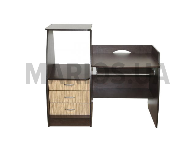 Неприхотливый дизайн компьютерного стола Клото позволяет ему вписаться практически в любой интерьер: будь-то офис, комната школьника-подростка или же офис солидного учреждения. Стол представляет собой непосредственно рабочую область и область с ящиками и нишей для компьютерного оборудования. Стол может быть правосторонним и левосторонним. Материалом изготовления является ламинированный ДСП (16мм). Вы можете заказать любой из стандартных цветов. Возможно изготовление стола в нестандартной цветовой гамме за дополнительную плату +15% от стоимости стола.Размеры компьютерного стола Клото <table border="1" cellpadding="5" cellspacing="1" rules="all" style="width: 450px; <tbody><tr><td>Длина, смШирина, смВысота, см</td></tr><tr><td>12560110