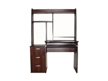 Компьютерный стол Ника 34 обеспечит Вас комфортным местом для работы или учебы. Здесь имеется надстройка с открытыми полочками для дисков, принтера и канцелярии. В тумбе с ящиками удобно хранить бумагу, файлы, документы. Стол может быть правосторонним и левосторонним. Материалом изготовления является ламинированный ДСП (16мм). Вы можете выбрать любой из стандартных цветов. Возможно изготовление стола в нестандартной цветовой гамме за дополнительную плату +15% от стоимости стола.Размеры компьютерного стола Ника 34 <table border="1" cellpadding="5" cellspacing="1" rules="all" style="width: 450px; <tbody><tr><td>Длина, смГлубина, смВысота, см</td></tr><tr><td>11055155