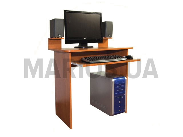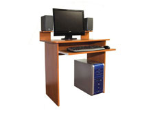 Ника 42 - компактный и простой компьютерный стол, в котором есть две подставки под колонки и выдвижная полочка для клавиатуры.