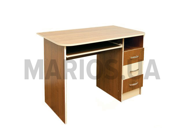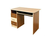 Ника 43 - хороший вариант компьютерного стола. который подойдет для маленьких комнат, где его можно установить возле окна. В столе есть тумба с тремя ящиками и открытой полочкой, и выдвижная полочка для клавиатуры. Стол может быть правосторонним и левосторонним. Материалом изготовления является ламинированный ДСП (16мм). Вы можете выбрать любой из стандартных цветов. Возможно изготовление стола в нестандартной цветовой гамме за дополнительную плату +15% от стоимости стола. Размеры компьютерного стола Ника 43<table border="1" cellpadding="5" cellspacing="1" rules="all" style="width: 450px;"><tbody> Длина, см Глубина, см Высота, см 100 60 75