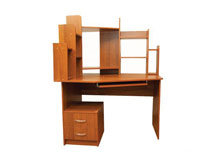 Ника 44 - угловой компьютерный стол с надстройкой, которая представляет собой множество открытых полочек. В столе имеется небольшая тумба с двумя ящиками и выдвижная полочка для клавиатуры. Стол может быть правосторонним и левосторонним. Материалом изготовления является ламинированный ДСП (16мм). Вы можете выбрать любой из стандартных цветов. Возможно изготовление стола в нестандартной цветовой гамме за дополнительную плату +15% от стоимости стола. Размеры компьютерного стола Ника 44 Длина, см Глубина, см Высота, см 120 80 150