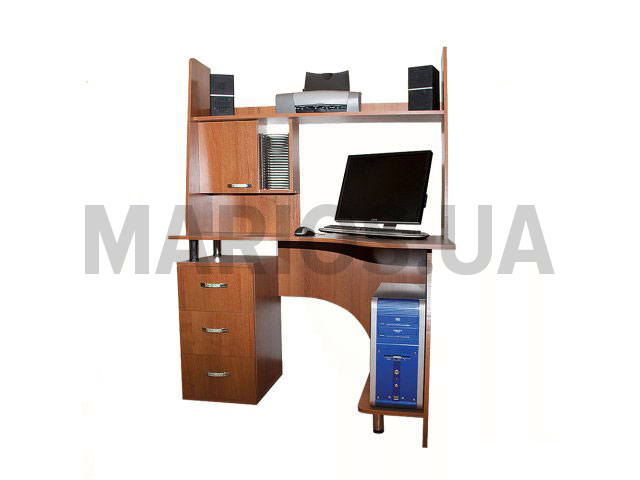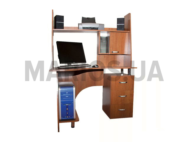Ника 8 - угловой компьютерный стол с надстройкой. Надстройка послужит местом для расположения принтера, колонок, а также для размещения папок и дисков. Стол может быть правосторонним и левосторонним. Материалом изготовления является ламинированный ДСП (16мм). Вы можете выбрать любой из стандартных цветов. Возможно изготовление стола в нестандартной цветовой гамме за дополнительную плату +15% от стоимости стола. Размеры компьютерного стола Ника 8 Длина, см Глубина, см Высота, см 120 80 150