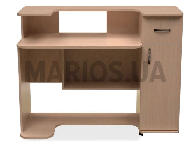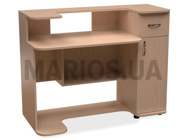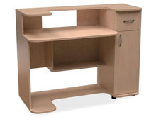 120.00см x 55.00см x 95.00см Характеристики мебели Материал ДСП Компьютерный стол НСК-32 – компактная современная модель, которая очень удобна для использования в офисах и в качестве стойки-ресепшн. Стол укомплектован закрытой тумбой с полками и выдвижным ящиком, где удобно разместить документацию. Под столом имеется дополнительная полочка. Материалом для изготовления данной модели служит ламинированная ДСП. На выбор предоставляется широкая палитра цветов. По желанию заказчика возможно изготовление модели в нестандартном цвете за дополнительную плату. Материал: корпус - ДСП 16мм; кромка торцов столешницы - ПВХ 2мм; кромка остальных торцов - ПВХ 0,5 мм.