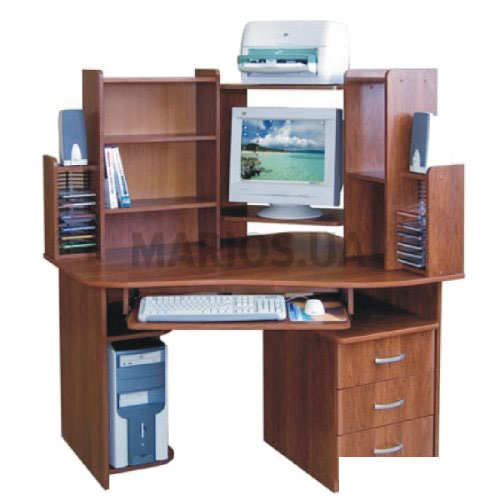 Прометей - угловой компьютерный стол с надстройкой, которая состоит из множества открытых полочек. Под столом есть тумба с ящиками, отделение для системного блока и выдвижная полочка для клавиатуры. Стол может быть правосторонним и левосторонним. Материалом изготовления является ламинированный ДСП (16мм). Вы можете заказать любой из стандартных цветов. Возможно изготовление стола в нестандартной цветовой гамме за дополнительную плату +15% от стоимости стола. Размеры компьютерного стола Прометей Длина, см Ширина, см Высота, см 120 80 150