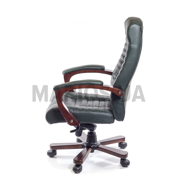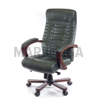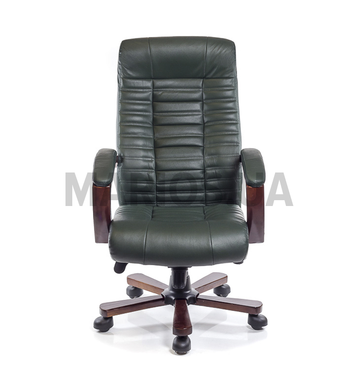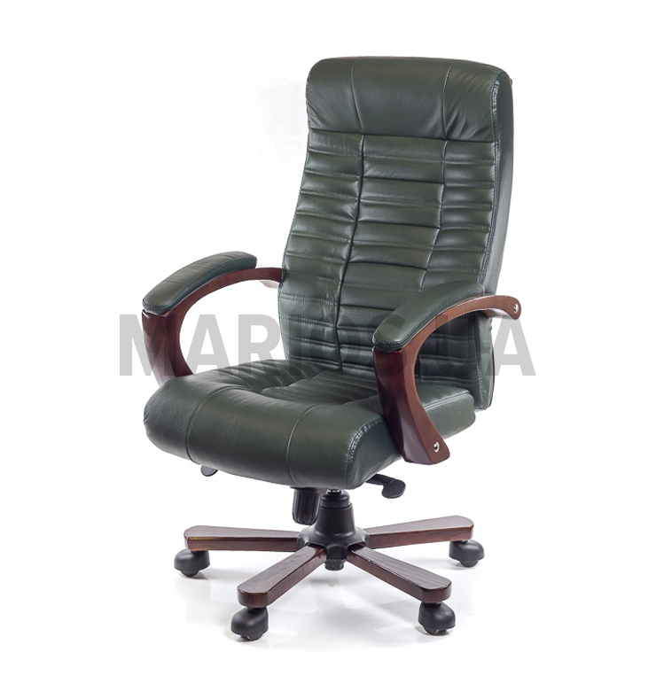 Кресло Атлант ∙ АКЛАС ∙ EX MB зелёный – модель, которая подойдет всем, кто предпочитает прагматизм, удобство и качество изделия. Массивное, с внушительными габаритами и стильной "мускулистой" прошивкой - Атлант вполне соответствует своему названию. Именно так должно выглядеть кресло, названное в честь того, кто может держать на своих плечах целый мир. Почему стоит купить. Атлант подчеркнет респектабельность обстановки и обеспечит высокий уровень комфорта. Благодаря продуманному рельефу и правильному строению спинки и сидения это кресло смело можно отнести в категорию эргономичных. Оно идеально будет поддерживать спину, и при этом расслаблять ее. Интегрированный подголовник даст возможность отдохнуть вашей шее после тяжелой многочасовой работы. Дизайн. Элегантная модель в классическом стиле - вот как можно описать дизайн этого кресла. Кресло достаточно большое, выглядит внушительно, но без излишней помпезности - ровно на столько, чтобы подчеркнуть респектабельность и хороший вкус своего успешного владельца. Силуэт достаточно лаконичный, но благодаря удачному сочетанию кожи и дерева он выглядит дорого и презентабельно. Сидение и спинка украшены элегантной прошивкой, которая не только украшает, но и формирует удобное посадочное место с массажным эффектом. Деревянные, тонированные лаком, детали подчеркивают полуматовый оттенок натуральной кожи, логично завершая богатый ансамбль. Обивка. Натуральная кожа премиум-класса – идеальный выбор обивки для кресла Атлант. Преимущества данного обивочного материала - это прочность, эластичность, хорошая тепло- и влагопроводимость. Наполнение кресла из качественного поролона достаточно мягкое, создает обволакивающее ощущение комфорта. Механизмы. Кресло Атлант укомплектовано механизмом мультиблок, с которым вы сможете полноценно насладиться временем, проведенным в этом кресле. Режим качания повышенной комфортности позволит расслабиться. Рабочее положение можно подобрать и зафиксировать под наиболее комфортным для себя углом сидения и спинки. С помощью декоративного винта под сидением мультиблок просто регулируется в соответствии с весом пользователя, что позволяет ему правильно выполнять свою работу. Газлифтом легко можно настроить высоту кресла с учетом своего роста, чтобы устроиться в нем с максимально комфортно. Подлокотники. Престижность данного кресла подчеркивают форменные, широкие подлокотники. Их Г-образный изгиб и размер подобраны так, чтобы рукам было комфортно облокачиваться на них. Натуральное тонированное дерево создает ощущение домашнего уюта и теплоты. Мягкие накладки защищают руки от контакта с твердой поверхностью и дарят дополнительный комфорт. Крестовина. Крестовина у данной модели также изготовлена из тонированного дерева. Красоту текстуры и гладкость поверхности дерева долгие годы будет хранить лаковое покрытие. Оно достаточно прочное, чтобы предотвратить возникновение мелких сколов и царапин в процессе эксплуатации. Под деревянными накладками - прочный металлический каркас, который обеспечит креслу и необходимую устойчивость, и прочность. Благодаря роликовым опорам кресло достаточно мобильное, несмотря на вес и большие габариты. Особенности. Кресло Атлант достаточно массивное, с высокой спинкой, а значит подойдет для владельца высоко