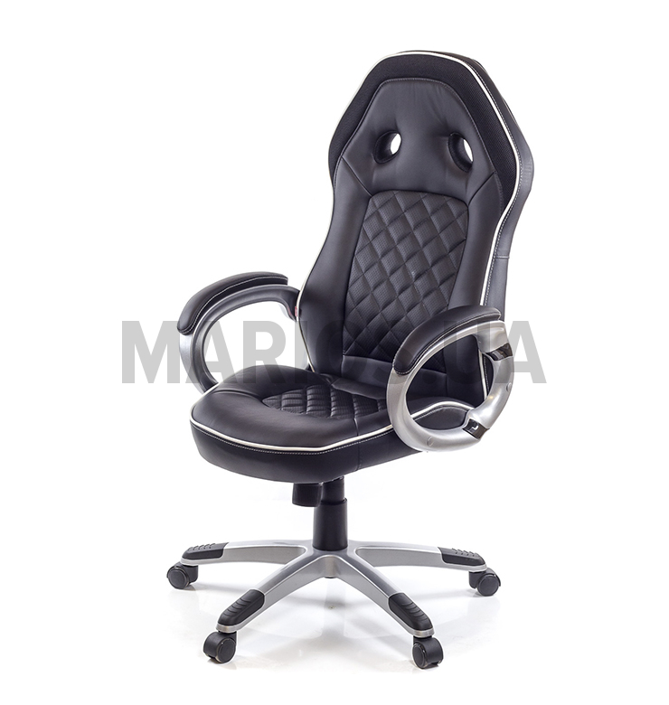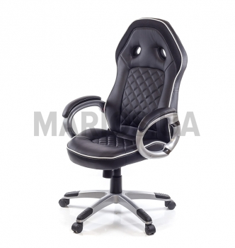 Кресло Блиц • АКЛАС • PL TILT чёрный - это кресло из линейки геймерских кресел. Огромная популярность данной категории стимулирует производителя постоянно расширять и обновлять модельный ряд на любой вкус, цвет и кошелек. Почему стоит купить. Кресло Блиц немного отличается по концепции от привычного всем геймерского кресла с яркими расцветками. Эта модель удачно сочетает в себе удобство и оригинальность "геймера" и практичность классического офисного кресла. Стильный внешний вид в классических тонах и продуманная до мелочей эргономика. Если добавить к этому отличное качество, правильные механизмы и компактные габариты, то такое кресло просто незаменимо как в офисе, так и дома. Дизайн. Внешний вид кресла стильный и современный, оригинальная форма спинки с отверстиями, присущая геймерским креслам отлично сочетается с ромбовидной прошивкой. Такой элемент декора не только украшает кресло, но и выполняет легкую массажную функцию. Красивый белый кантик по контуру кресла красиво оттеняет благородный черный цвет обивки. Такая модель будет уместной и в комнате подростка, и в офисе, и в домашнем рабочем уголке. Обивка. Обивочный материал кресла Блиц - высококачественная экокожа, современный материал на натуральной хлопковой основе. В местах максимального контакта обивки с телом использована перфорированная экокожа, что увеличивает гигроскопичность и воздухопроницаемость материала. Благодаря этому находиться в кресле будет намного комфортнее. В верхней части подголовника есть декоративная вставка из сотовой ткани в тон основной обивке. Механизмы. Механизм качания, установленный в данной модели, даст возможность чередовать работу или игру с приятными сеансами расслабления, не вставая с любимого кресла. Газлифт поможет установить оптимальную для вашего роста высоту сидения. В верхнем положении кресло имеет высокую посадку, что подойдет людям среднего роста. Регулировка механизма качания, под вес сидящего, осуществляется с помощью специального винта под сидением. Пружина зажимается под больший вес и, наоборот, ослабляется под меньший. Подлокотники. У данной модели пластиковые подлокотники имеют овальную форму, на которую очень удобно ложатся руки, что обеспечивает им надежную опору. Мягкие накладки, обтянутые материалом в тон обивки, создают вашим рукам дополнительный комфорт. Крестовина. Цельнолитая крестовина серебристого цвета изготовлена из прочного толстостенного пластика. Отсутствие сварных швов и внутренних рёбер жесткости позволяют ей выдерживать нагрузку до 120 кг. Черные пластиковые накладки-протекторы на крестовине предотвращают соскальзывание ног и защищают поверхность от царапин и повреждений. Пластиковые ролики обеспечат креслу необходимую мобильность и подойдут для мягкого типа покрытия пола. Колесики, при необходимости, можно заменить на прорезиненные, которые подходят для твердых покрытий, таких как паркет или ламинат. Особенности. Данная модель разработана таким образом, чтобы можно было достаточно долго комфортно находиться на одном месте. Оно достаточно мягкое и эргономичное - именно то, что нужно для длительного времяпровождения на одном месте. Удобная боковая поддержка спины и бедер позволит вам устроиться с максимальным комфортом, а небольшой поясничный валик служит для удобной поддерж
