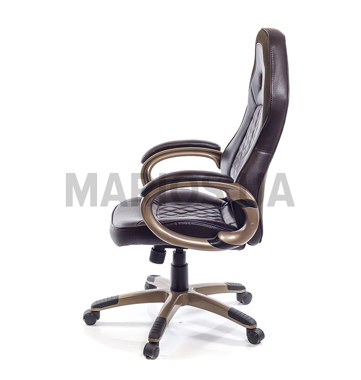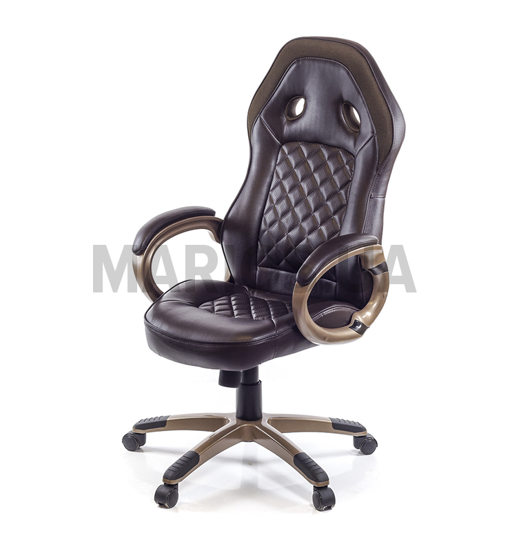 Кресло Блиц • АКЛАС • PL TILT коричневый - это кресло из линейки геймерских кресел. Огромная популярность данной категории стимулирует производителя постоянно расширять и обновлять модельный ряд на любой вкус, цвет и кошелек. Почему стоит купить. Кресло Блиц немного отличается по концепции от привычного всем геймерского кресла с яркими расцветками. Эта модель удачно сочетает в себе удобство и оригинальность "геймера" и практичность классического офисного кресла. Стильный внешний вид в классических тонах и продуманная до мелочей эргономика, если добавить к этому отличное качество, правильные механизмы и компактные габариты, то такое кресло просто незаменимо как в офисе, так и дома. Дизайн. Внешний вид кресла стильный и современный. Оригинальная форма спинки с отверстиями, присущая "геймерским креслам" отлично сочетается с ромбовидной прошивкой. Прошивка - это не только элемент декора, она не только украшает кресло, но и выполняет легкую массажную функцию. Такая модель будет уместной и в комнате подростка, и в офисе, и в домашнем рабочем уголке. Обивка. Обивочный материал кресла Блиц - высококачественная экокожа, современный материал на натуральной хлопковой основе. В местах максимального контакта обивки с телом применена технология перфорирования, что увеличивает гигроскопичность и воздухопроницаемость материала. Благодаря этому находиться в кресле будет намного комфортнее. В верхней части подголовника есть декоративная вставка из сотовой ткани в тон основной обивке. Механизмы. Механизм качания, установленный в данной модели, даст возможность чередовать работу или игру с приятными сеансами расслабления, не вставая с любимого кресла. Газлифт поможет установить оптимальную для вашего роста высоту сидения. В верхнем положении кресло имеет высокую посадку, что подойдет людям среднего роста. Регулировка механизма качания, под вес сидящего, осуществляется с помощью специального винта под сидением. Пружина зажимается под больший вес и, наоборот, ослабляется под меньший. Подлокотники. У данной модели пластиковые подлокотники имеют овальную форму, на которую очень удобно ложатся руки, что обеспечивает им надежную опору. Мягкие накладки, обтянутые материалом в тон обивки, создают вашим рукам дополнительный комфорт. Крестовина. Цельнолитая крестовина серебристого цвета изготовлена из прочного толстостенного пластика. Отсутствие сварных швов и внутренних рёбер жесткости позволяют ей выдерживать нагрузку до 120 кг. Черные пластиковые накладки-протекторы на крестовине предотвращают соскальзывание ног и защищают поверхность от царапин и повреждений. Пластиковые ролики обеспечат креслу необходимую мобильность и подойдут для мягкого типа покрытия пола. Колесики, при необходимости, можно заменить на прорезиненные, которые подходят для твердых покрытий, таких как паркет или ламинат. Особенности. Кресло Блиц подойдет для подростка или человека среднего роста. Данная модель разработана таким образом, чтобы можно было достаточно долго комфортно находиться на одном месте. Удобная боковая поддержка спины и бедер позволит вам устроиться с максимальным комфортом, а небольшой поясничный валик служит для удобной поддержки спины и сохранения правильной осанки.