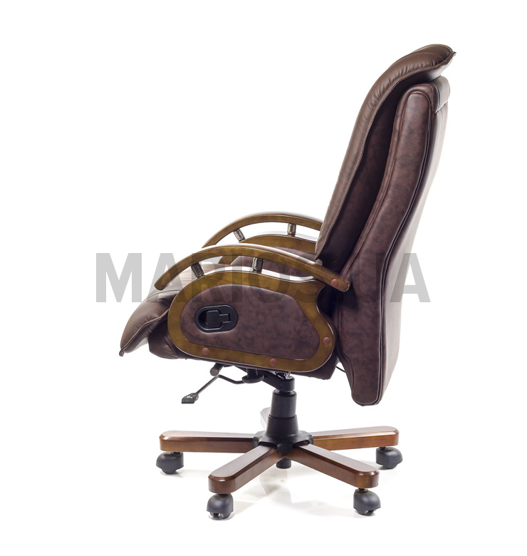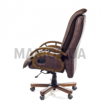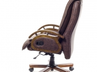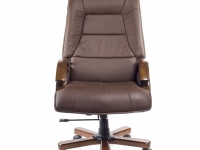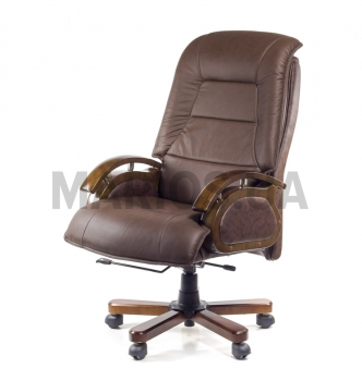 Кресло Босс • АКЛАС • EX RL коричневый – представительская модель VIP класса, в которой удачно совмещены стиль и комфорт, элегантный дизайн и высокое качество. Такое кресло подчеркнет высокий статус своего успешного владельца. Почему стоит купить. Благодаря классической форме, качественным материалам и продуманному до мелочей силуэту кресло смотрится солидно и дорого. Особое внимание стоит обратить на эргономичную спинку с интегрированным подголовником – в таком кресле Вам понравиться не только продуктивно работать, но и приятно отдыхать в свободные минуты. Дизайн. Рельеф сидения кресла не просто красивый, в нем каждый изгиб специально разработан для улучшения комфорта. Ансамбль натуральных материалов, удачно обыгранный в данной модели, украсит интерьер в классическом стиле с элементами из натурального дерева и подчеркнет отличный вкус своего босса. Обивка. Натуральная перфорированная кожа - природный материал высокого качества. Мягкий, эластичный, "дышащий" - какие еще могут быть сомнения в его преимуществах? Деревянный каркас кресла имеет изогнутую форму, повторяющую очертания позвоночника для улучшения эргономики модели. По всей поверхности сидения и спинки использована накладка из мебельного силикона. Этот материал более эластичный, чем обычный поролон - кресло отлично держит форму, не просаживается со временем, но в то же время остается достаточно мягким и упругим. Классические цвета обивки гармонично сочетаются с деревянными элементами подлокотников и крестовины из натурального дерева, создавая при этом единый неповторимый образ. Механизмы. В данной модели установлен современным механизм релакс. Этот механизм позволяет изменять и фиксировать угол наклона спинки в любом удобном вам положении. Откинув кресло глубоко назад, почти горизонтально относительно пола, вы сможете превратить Босс в удобное кресло-кровать. В таком положении можно отлично отдохнуть в нем, сделав небольшой перерыв между важными делами. Приведенный в действие режим качания еще более скрасит минуты отдыха. Кресло легко настраивается под вес пользователя специальным винтом под сидением и регулируется по высоте с помощью газлифта. Подлокотники. Подлокотники кресла заслуживают особого внимания: полированное до блеска дерево имеет эргономичную форму для максимального удобства ваших рук. Металлические вставки и мягкие боковые накладки гармонично дополняют общий дизайн кресла. Крестовина. Крестовина изготовлена из натурального дерева и окрашена в тон подлокотников. Все элементы из натурального дерева, тщательно обработаны и покрыты тонированным глянцевым противоударным лаком - кресло долгое время будет оставаться в безупречном состоянии, и радовать вас. Массивный металлический каркас крестовины обеспечит креслу прочность и надежность, невзирая на внешнюю массивность самой модели. В то же время кресло Босс легко передвигать с помощью пластиковых роликов с юбочкой, которые установлены на нём. Особенности. Благодаря своим качественным характеристикам и привлекательной цене, кресло Босс пользуется повышенным спросом у покупателей, предпочитающих классику и отличное качество за разумную цену! Эта модель яркий представитель сочетания массивности, строгости и статусной сдержанности.