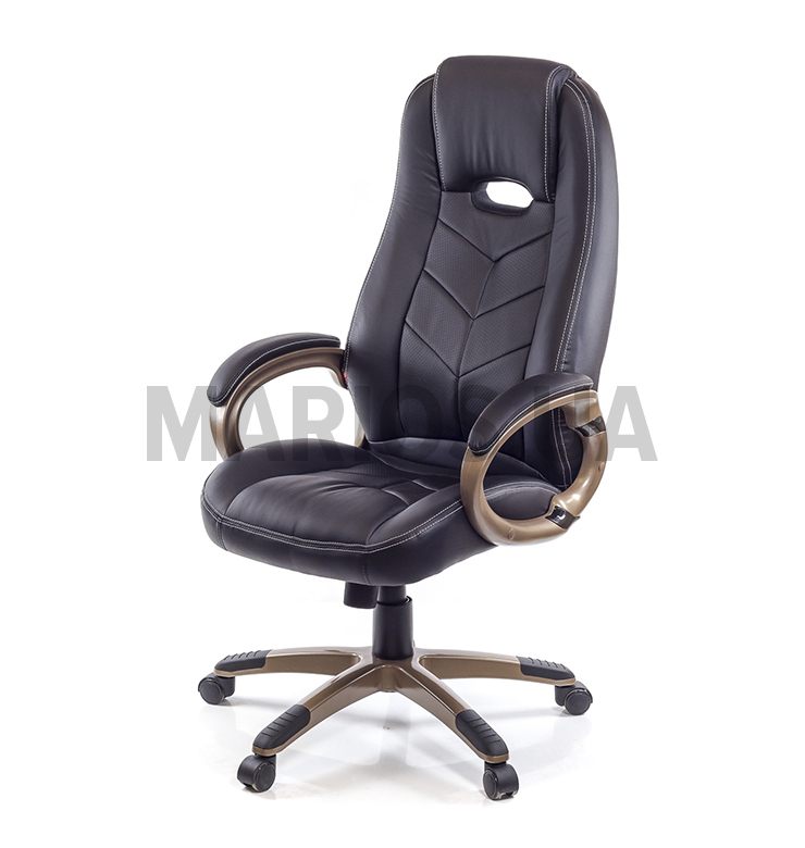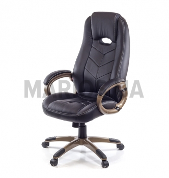 Кресло Брук • АКЛАС • PL TILT чёрный - это модель из серии геймерских кресел. Образцы данной категории очень популярны среди наших покупателей, что и стимулирует производителя постоянно обновлять и расширять модельный ряд под разные запросы и радовать этим наших клиентов. Почему стоит купить. Кресло Брук имеет отчётливые детали, по которым явно угадывается его принадлежность в серии "геймеров" - это эргономичная посадка, крупные детали прошивки, декоративное отверстие в спинке. Но в то же время, благодаря сдержанному цвету однотонной обивки и более классическим формам, оно имеет внешний вид стильного офисного кресла. Эти особенности делают данную модель более универсальной и уместной в любом интерьере. В довершение всего, Брук отличного качества, оснащён правильными механизмами и имеет компактные габариты - отличное решение, как для офиса, так и для дома. Дизайн. Дизайн кресла стильный, он удовлетворит самые смелые запросы и пожелания. Оригинальная высокая спинка с отверстием, имеющимся практически у всех "геймерских кресел" отлично сочетается с красивыми диагональными линиями прошивки. Такая модель будет уместной и в комнате подростка, в офисе и в домашнем рабочем уголке. Обивка. Современное кресло Брук одето в такой же современный и высокотехнологичный наряд из экокожи приятного чёрного цвета. Этот материал имеет натуральную хлопчатобумажную основу, что улучшает его "дышащие свойства". В местах максимального контакта обивки с телом есть вставки из перфорированной экокожи, что увеличивает гигроскопичность и воздухопроницаемость материала, а в следствие и повышают комфортность кресла. Механизмы. Механизм качания, установленный в данной модели, даст возможность чередовать работу или игру с приятными сеансами расслабления. Управлять этим механизмом очень просто с помощью рычага под сидением. Газлифт поможет отрегулировать до оптимальной, для вашего роста, высоты сидения. В верхнем положении кресло имеет высокую посадку, что подойдёт людям среднего роста. Регулировка механизма качания под вес сидящего, осуществляется с помощью специального винта под сидением. Пружина зажимается под больший вес и, наоборот, ослабляется под меньший. Подлокотники. У данной модели пластиковые подлокотники имеют овальную форму, на которую очень удобно ложатся руки, что обеспечивает им надёжную опору. Мягкие накладки, обтянутые материалом в тон обивки, создают вашим рукам дополнительный комфорт. Крестовина. Цельнолитая крестовина оригинального бронзового оттенка изготовлена из прочного толстостенного пластика. Отсутствие сварных швов и внутренние ребра жёсткости позволяют ей выдерживать нагрузку более 120 кг. Черные пластиковые накладки-протекторы на крестовине предотвращают соскальзывание ног и защищают поверхность от царапин и повреждений. Эти вставки гармонируют с аналогичными по цвету вставками в подлокотниках, что подчёркивает единый стиль кресла и говорит о его продуманности даже в таких мелочах. Пластиковые ролики обеспечат креслу необходимую мобильность и подойдут для мягкого типа покрытия пола. Колёсики, при необходимости, можно заменить на прорезиненные, которые подходят для твёрдых покрытий, таких как паркет или ламинат. Особенности. Кресло Брук имеет небольшие размеры, подойдёт для подростка или человека среднег