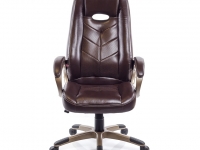 Кресло Брук • АКЛАС • PL TILT коричневый - это модель из серии геймерских кресел. Образцы данной категории очень популярны среди наших покупателей, что и стимулирует производителя постоянно обновлять и расширять модельный ряд под разные запросы и радовать этим наших клиентов. Почему стоит купить. Кресло Брук имеет отчётливые детали, по которым явно угадывается его принадлежность в серии "геймеров" - это эргономичная посадка, крупные детали прошивки, декоративное отверстие в спинке. Но в то же время, благодаря сдержанному цвету однотонной обивки и более классическим формам, оно имеет внешний вид стильного офисного кресла. Эти особенности делают данную модель более универсальной и уместной в любом интерьере. В довершение всего, Брук отличного качества, оснащён правильными механизмами и имеет компактные габариты - отличное решение, как для офиса, так и для дома. Дизайн. Дизайн кресла стильный, он удовлетворит самые смелые запросы и пожелания. Оригинальная высокая спинка с отверстием, имеющимся практически у всех "геймерских кресел" отлично сочетается с красивыми диагональными линиями прошивки. Такая модель будет уместной и в комнате подростка, в офисе и в домашнем рабочем уголке. Обивка. Современное кресло Брук одето в такой же современный и высокотехнологичный наряд из экокожи приятного шоколадного цвета. Этот материал имеет натуральную хлопчатобумажную основу, что улучшает его "дышащие свойства". В местах максимального контакта обивки с телом есть вставки из перфорированной экокожи, что увеличивает гигроскопичность и воздухопроницаемость материала, а в следствие и повышают комфортность кресла. Механизмы. Механизм качания, установленный в данной модели, даст возможность чередовать работу или игру с приятными сеансами расслабления. Управлять этим механизмом очень просто с помощью рычага под сидением. Газлифт поможет отрегулировать до оптимальной, для вашего роста, высоты сидения. В верхнем положении кресло имеет высокую посадку, что подойдёт людям среднего роста. Регулировка механизма качания под вес сидящего, осуществляется с помощью специального винта под сидением. Пружина зажимается под больший вес и, наоборот, ослабляется под меньший. Подлокотники. У данной модели пластиковые подлокотники имеют овальную форму, на которую очень удобно ложатся руки, что обеспечивает им надёжную опору. Мягкие накладки, обтянутые материалом в тон обивки, создают вашим рукам дополнительный комфорт. Крестовина. Цельнолитая крестовина оригинального бронзового оттенка изготовлена из прочного толстостенного пластика. Отсутствие сварных швов и внутренние ребра жёсткости позволяют ей выдерживать нагрузку более 120 кг. Черные пластиковые накладки-протекторы на крестовине предотвращают соскальзывание ног и защищают поверхность от царапин и повреждений. Эти вставки гармонируют с аналогичными по цвету вставками в подлокотниках, что подчёркивает единый стиль кресла и говорит о его продуманности даже в таких мелочах. Пластиковые ролики обеспечат креслу необходимую мобильность и подойдут для мягкого типа покрытия пола. Колёсики, при необходимости, можно заменить на прорезиненные, которые подходят для твёрдых покрытий, таких как паркет или ламинат. Особенности. Кресло Брук имеет небольшие размеры, подойдёт для подростка или человека