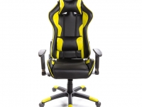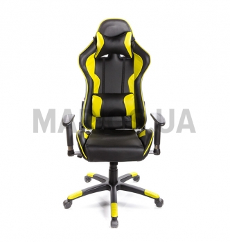 Кресло Хорнет • АКЛАС • PL RL жёлтый. Свое название это геймерское кресло получило в честь крутого американского военного самолета Макдоннел-Дуглас Хорнет. Присев в него, вы наверняка почувствуете себя пилотом данного мощного бомбардировщика. Стильная внешность и высокотехнологичная начинка - такое идеальное сочетание может сразить наповал самого требовательного покупателя. Почему стоит купить. Эта яркая модель сочетает в себе современный дизайн, высококачественные материалы и правильные механизмы. Это подходящее кресло и для взрослых, и для подростков, Любители поиграть в видеоигры и вечно занятые IT-шники несомненно оценят удобство и оригинальность кресла Хорнет. Дизайн. Внешний дизайн Хорнета напоминает кресло пилота штурмовика - добротное и удобное. Контрастные цветные вставки, которые повторяются в подушках, делают кресло более стильным и веселым. Это кресло отлично впишется в современный интерьер вашего дома или офиса. А яркие расцветки внесут в него веселые, и даже игривые нотки. На сегодня кресло представлено в шести цветовых сочетаниях на любой вкус. Каркас кресла - это металлическая изогнутая труба, которая не только создает неповторимый силуэт, но и обеспечивает креслу прочность, надежность, устойчивость и долговечность. Обивка. Обивка кресла Хорнет - это экокожа, современный материал на хлопчатобумажной основе. Она хорошего качества, достаточно прочная и эластичная, приятная на ощупь. По своим качествам экокожа ничем не уступает натуральной коже и имеет при этом достаточно демократичную цену. Наполнение кресла достаточно жесткое, состоит из поролона-мемори, который "запоминает" и подстраивается под очертания тела сидящего человека для более комфортной посадки. Механизмы. В данной модели установлен современным механизм релакс. С его помощью вы сможете изменить и зафиксировать угол наклона спинки в любом удобном вам положении. Спинка у этого кресла откидывается практически горизонтально полу и превращает его в такое себе удобное кресло-лежанку. Это дает возможность вам удобно расположиться и немного отдохнуть во время работы или на привале длительного героического похода за победой. Включив режим качания вы сможете сделать свой отдых еще более комфортным. Вернуть в рабочее положение кресло можно одним движением руки. С помощью декоративной ручки механизм качания легко настраивается под вес пользователя, что позволяет ему работать безопасно и правильно с возложенной на него нагрузкой. Газлифт позволит отрегулировать высоту кресла так под рост пользователя. Подлокотники. Благодаря специальному мягкому полиуретановому покрытию верхней части пластиковые подлокотники в данном кресле удобные и приятные на ощупь. Регулируются они не только по высоте, но и в горизонтальной плоскости. Их можно установить в удобном вам положении или максимально опустить, чтобы появилась возможность пододвинуть кресло вплотную к столу. Крестовина. Цельнолитая крестовина изготовлена из прочного толстостенного пластика с внутренними ребрами жесткости. Это позволяет ей выдерживать нагрузку более 150 кг. Структурные пластиковые накладки-протекторы на крестовине помогают удобно расположить ноги, чтобы они не скользили. Накладки цветные, подобраны в тон цветных вставок обивки кресла. Прорезиненные ролики обеспечат кре