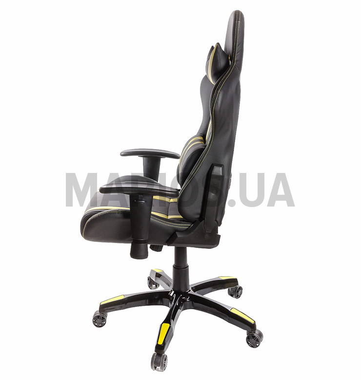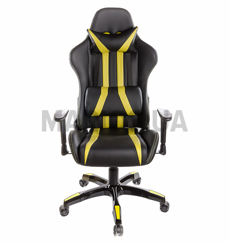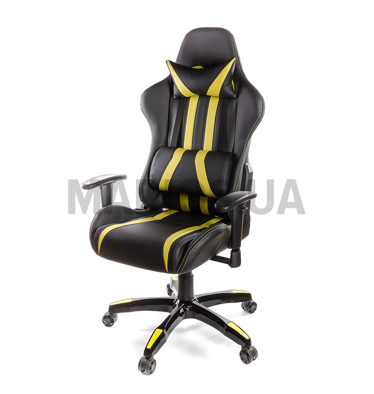 Кресло Стрик • АКЛАС • PL RL жёлтый - это стильное геймерское кресло было названо в честь одного из персонажей любимого многими мультфильма "Трансформеры". Внешне привлекательное и высокотехнологичное изнутри - вот в чем залог успеха данной модели. Почему стоит купить. Современный дизайн, продуманная эргономика, высококачественные материалы и механизмы нашли достойное сочетание в этом классном креслом, которое подойдет и подросткам, и взрослым любителям пострелять и погонять в своем идеальном виртуальном мире. Придется по душе оно и тем, кому по долгу службы приходится достаточно много времени проводить за рабочим столом. Дизайн. Оригинальный внешний вид этой модели немного напоминает кресло капитана звездолета или штурманское кресло гоночного автомобиля. Все детали продуманы до мелочей, даже ролики стиллизированы под автомобильные диски. Контрастные цветные полосы, которые повторяются в подушках, придают креслу немного стильной дерзости и яркости. Каркас кресла - это металлическая изогнутая труба, которая не только создает неповторимый силуэт, но и обеспечивает креслу прочность и долговечность. Обивка. Экокожа, которая использована в качестве обивки кресла Стрик - это прочный, эластичный материал на хлопчатобумажной основе, приятный на ощупь. Он практически не уступает по своим качествам натуральной коже, а его цена - это приятный бонус для покупателя. Наполнение кресла достаточно жесткое, состоит из 4 слоев мебельного поролона. Верхний слой - это поролон-мемори, который "запоминает" и подстраивается под очертания тела сидящего человека для более комфортной посадки. Дополнительно в качестве смягчителя использовано силиконовое волокно. Механизмы. Кресло Стрик оснащено современным механизмом релакс. Этот механизм позволяет изменить и зафиксировать угол наклона спинки в любом удобном положении. В данной модели спинка откидывается практически горизонтально полу и превращает его в такое себе удобное кресло-кровать. Включив режим качания повышенной комфортности вы сможете сделать свой отдых еще более комфортным, а после вернуть его удобное для работы положение и приступить к покорению новых вершин бизнеса или к разработке успешного тактического плана для новых феерических побед. С помощью декоративной ручки механизм качания легко настраивается под вес пользователя, что позволяет ему работать безопасно и правильно с возложенной на него нагрузкой. Газлифт позволит отрегулировать высоту кресла так под рост пользователя. Подлокотники. Пластиковые подлокотники в данном кресле удобные и приятные на ощупь благодаря специальному мягкому прорезиненному покрытию верхней части. Регулировать их можно они не только по высоте, но и в горизонтальной плоскости. Их можно установить в удобном вам положении или максимально опустить, чтобы появилась возможность пододвинуть кресло вплотную к столу. Крестовина. Цельнолитая крестовина изготовлена из прочного толстостенного пластика с внутренними ребрами жесткости, что позволит ей выдерживать нагрузку более 150 кг. Структурные пластиковые вставки-протекторы на крестовине помогают удобно расположить ноги, чтобы они не скользили. Пластиковые роликовые опоры обеспечат креслу необходимую мобильность и подойдут для мягких типов покрытия пола. Особенности. Кресло Стрик имеет 