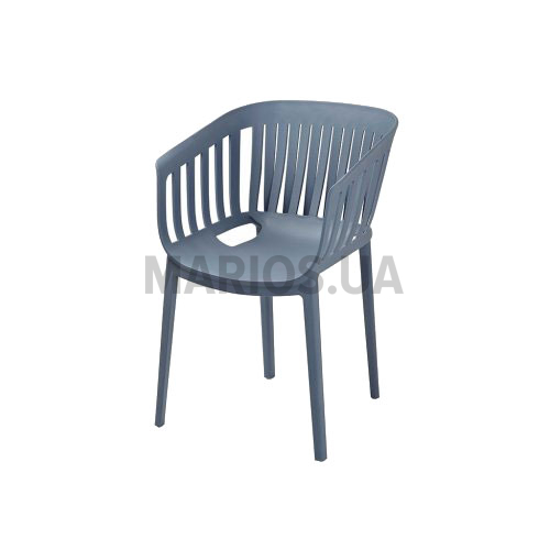 Характеристики мебели Материал пластик Кресло Патио пластик сланец Характеристики: Материал: пластик с подлокотниками. Цвет: сланец. Размер: Ширина: 54.6 см Глубина: 59.5 см Высота: 82 см