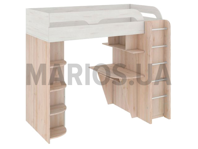 210.00см x 111.00см x 180.00см Вес0.00кг Характеристики мебели МатериалДСП Кровать-чердак Норд-B Материал: ДСП 18 мм Состоит из: верхняя кровать с защитным бортиком на всю длину у стены и передним бортиком до лестницы; стеллаж угловой для книг и сувениров; встроенный шкаф с двумя открытыми полками и тремя выдвижными ящиками на направляющих; рабочий стол; навесная полка; шкаф с закрытыми полками; лестница. Цвет: корпус - Бук Скандинавський, фасад - Бук Скандинавський, Симфония, кровать - Симфония. Размер: (Ш/В/Г) - 210/180/111 см Спальное место: 90х200 см