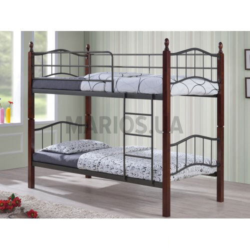 200.00см x 100.00см x 168.00см Вес0.00кг Характеристики мебели Материалдерево, металл Кровать двухъярусная DD Iris Характеристики: Материал: дерево + металл. Цвет: дерево - орех; металл - рустикаль. Размер: Ширина: 100 см Длина: 200 см Высота: 168 см Спальное место: 90х190 Высота между ярусами: 80 см Основание: гнутые буковые ламели. Кровать можно легко трансформировать в две односпальные кровати.