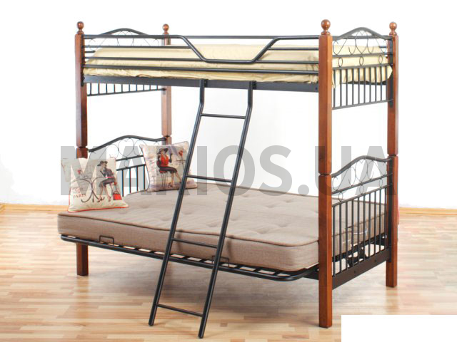 190.00см x 100.00см x 180.00см Характеристики мебели Материал дерево, металл Кровать двухъярусная Fun Futon Характеристики: Материал: дерево + металл. Цвет: дерево - орех; металл - рустикаль. Размер: Ширина: 100 см Длина: 200 см Высота: 180 см Размер спального места верхнего яруса: 90х190 Размер спального места нижнего яруса: 70х190 Цена указана за кровать без футона. Футон можно приобрести за дополнительную плату. Нижний ярус в разложенном виде: 140х190 Спальное место: 90х190 Высота между ярусами: 80 см Основание: буковые ламели. Кровать можно легко трансформировать в две односпальные кровати.