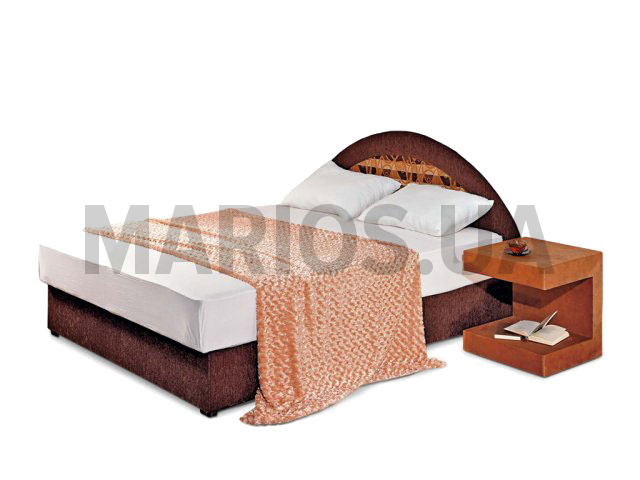 Изголовье кровати обито мягким валиком и оформлено обивочными тканями. Изножье у кровати отсутствует, что позволит Вам поставить ее в любую часть комнаты и подойти Вы сможете к ней с трех сторон.