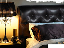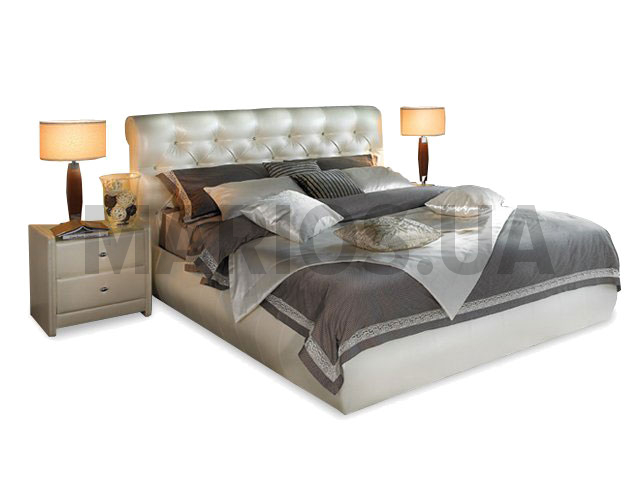 Красивое высокое изголовье кровати обито тканью, оно мягкое, на него будет удобно облокотится и заняться любимым делом - чтением книг или просмотром телевизора. Изножье отсутствует, что делает кровать удобной в эксплуатации. Поставить ее можно в любой части комнаты и подойти к ней Вы сможете с трех сторон.